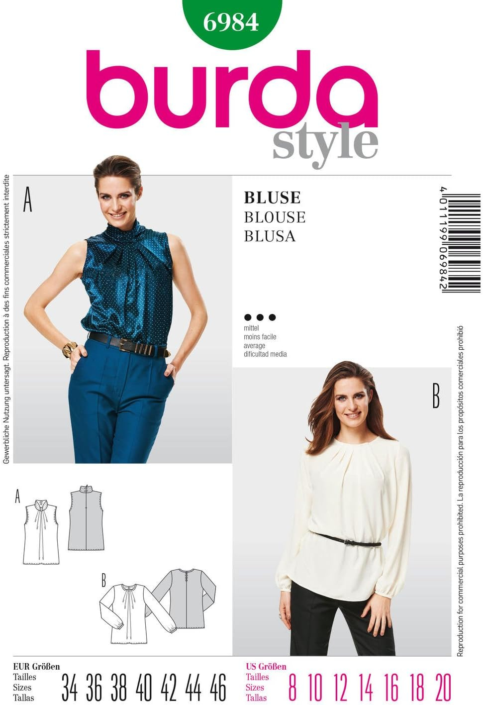 Burda Tops Sewing Pattern 6984 – Blouse Sizes: 8-20