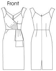 MISSES’ DRESS: Dress has close-fitting, lined, boned bodice with right front pleats, inset, pleated drapes, inside belt, semi-fitted, underlined skirt, left front pleats, lined sleeves, invisible back zipper and slit. Designed for soft lightweight woven fabrics. FABRICS: Faille, Crepe De Chine, Taffeta, Cotton Damask. Lining/Underlining: Crepe De Chine. Unsuitable for obvious diagonals. With Nap. NOTIONS: 20″/22″ Invisible Zipper, One Hook and Eye, One 3/4″ Hook and Eye Closure, 11/2-yard of 1/4″ Covered Boning, 11/4-yard of 3/4″ Grosgrain Ribbon. Combinations: A5 (6-8-10-12-14), E5 (14-16-18-20-22).