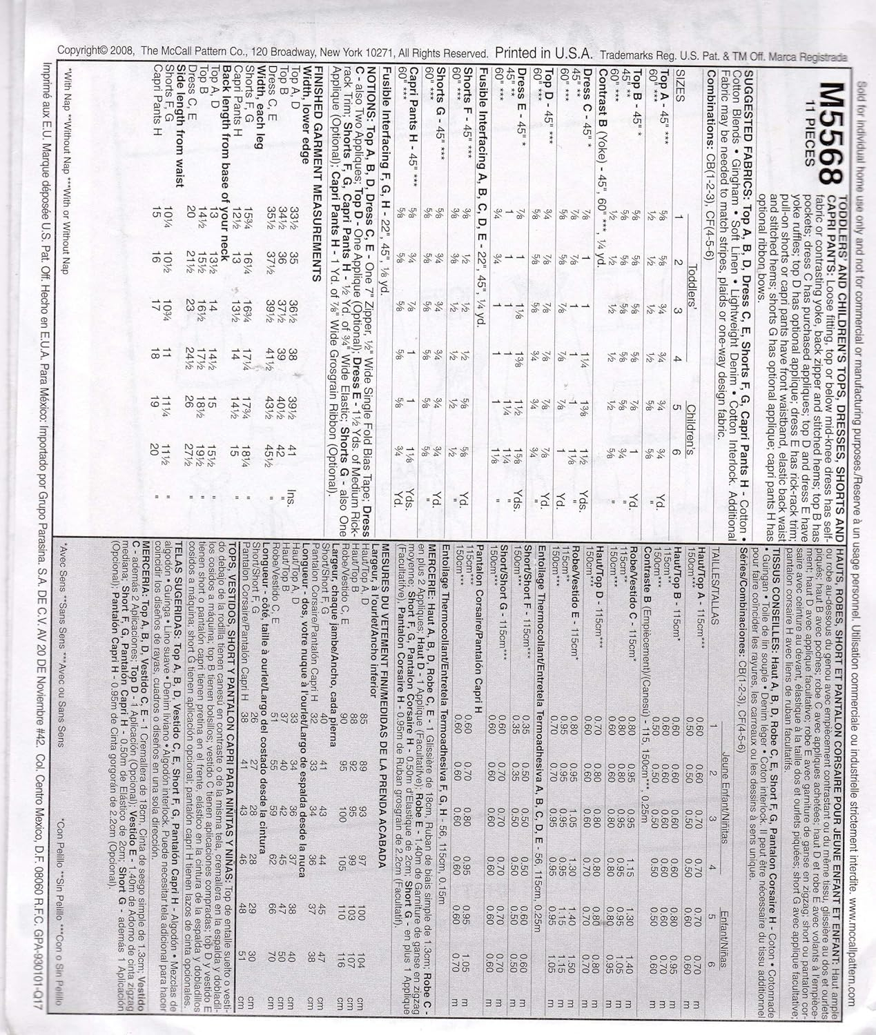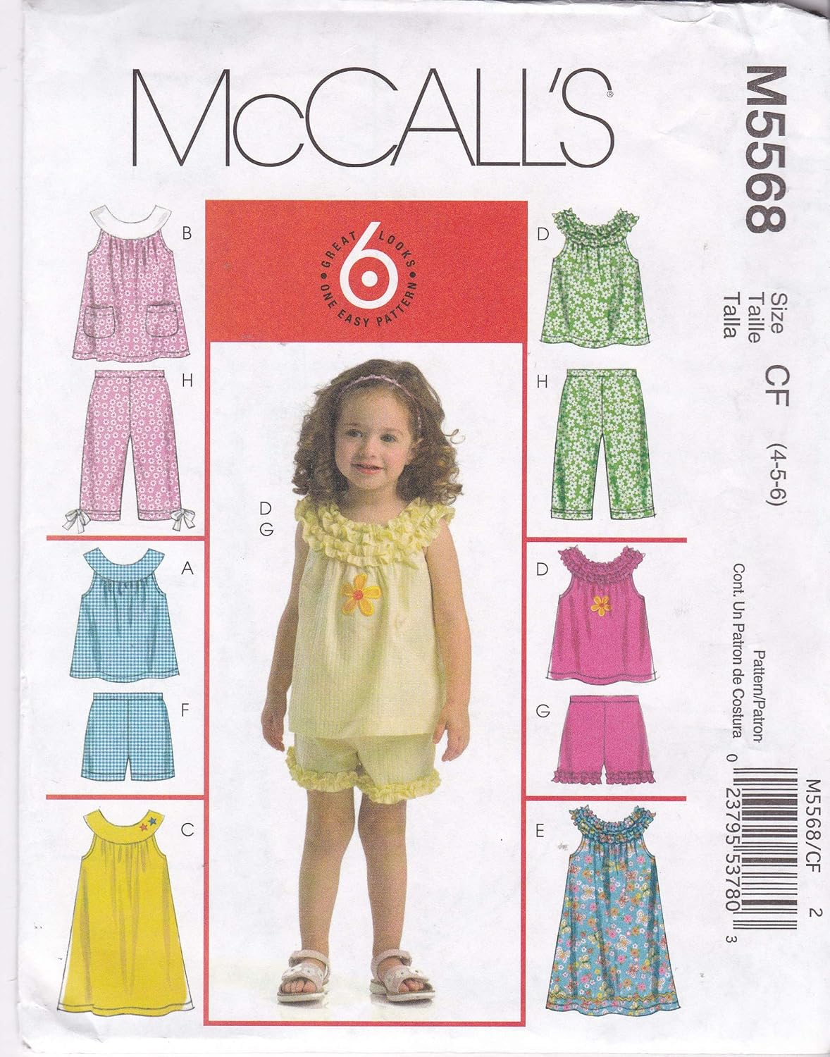 Children’s Tops, Dresses, Shorts and Capri Pants Child Size 4 5 6 McCall’s Sewing Pattern 5568