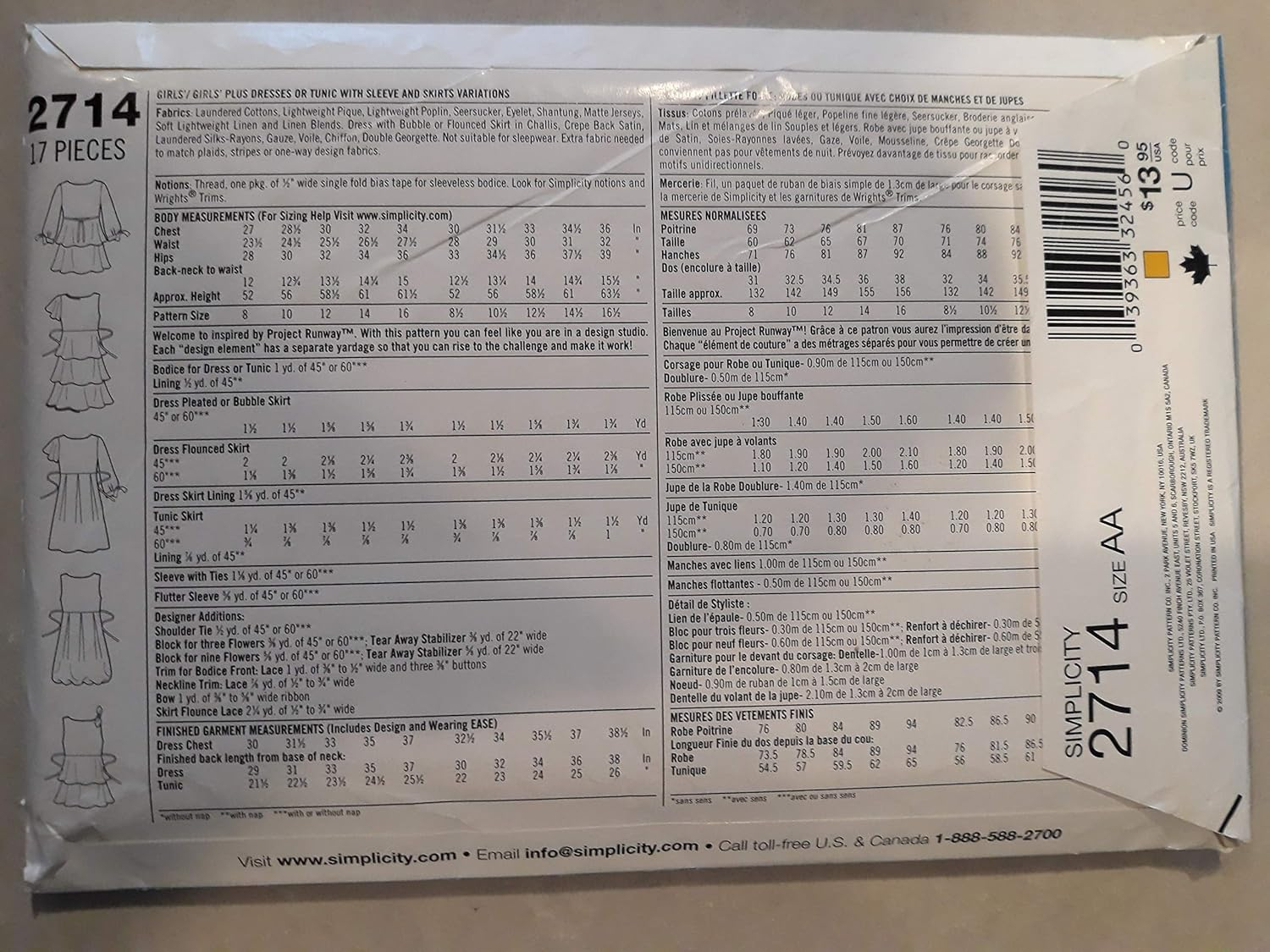 Girls Dress or Tunic with Sleeve and Skirt Variations Simplicity 2714 Size 8-16 Project Runway ASIN: B01D3FIL7M