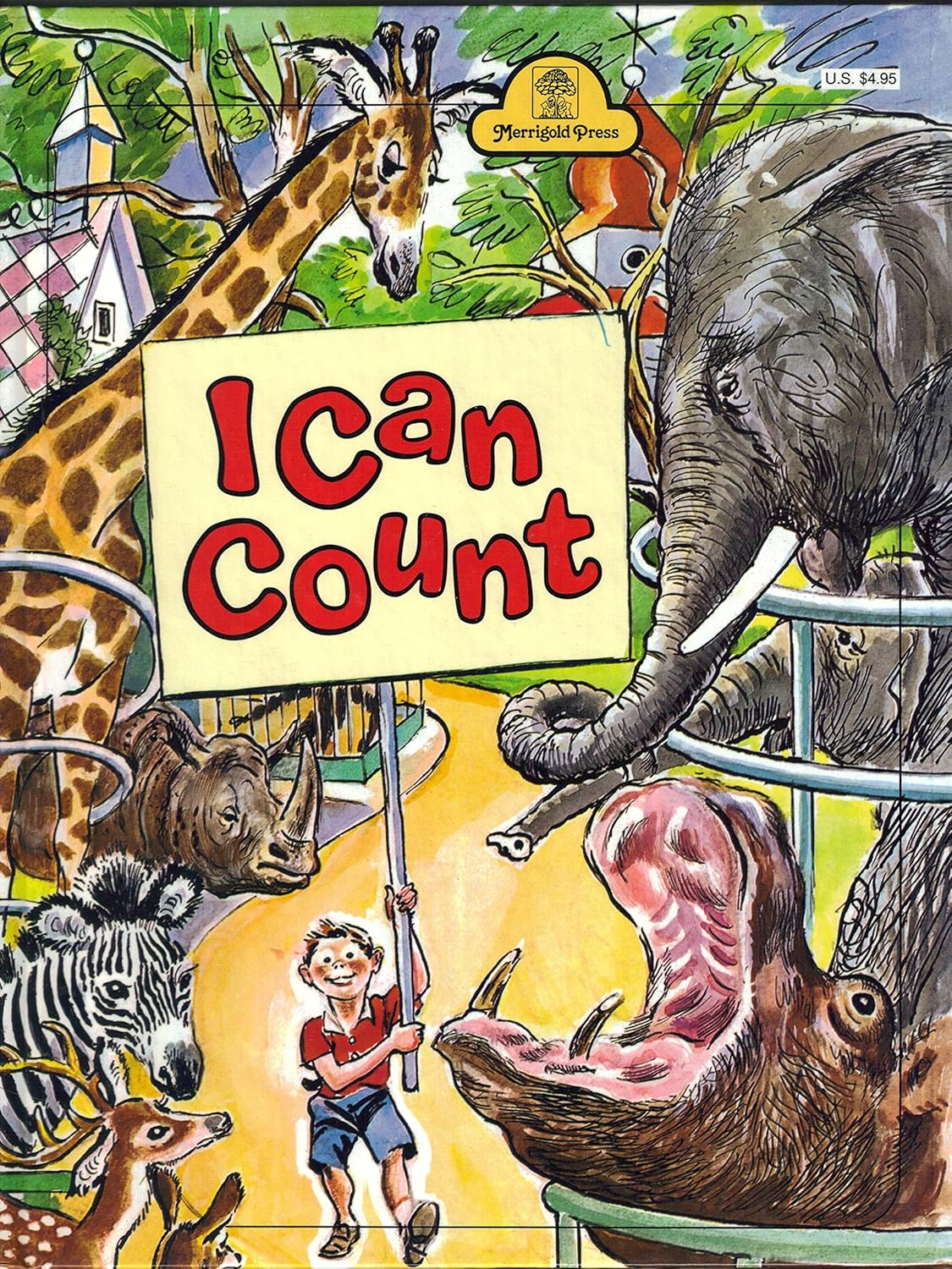 Hardcover, 8 1/2″ X 11 1/2″, pages illistrated with entire page painting of zoo animals which are counted. 1963 edition in very good condition.