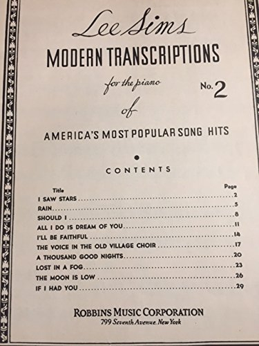 Lee Sims Modern Transcriptions No. 2 for the piano of America’s Most Popular Song Hits