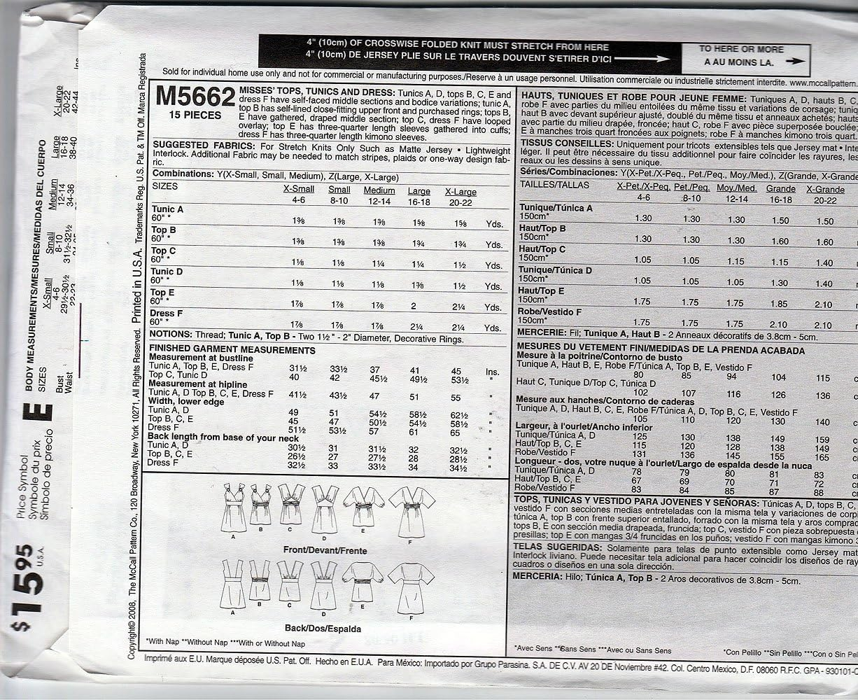 McCall’s M56622008 Misses’ Tops, Tunics and Dress Size Z (16-22)