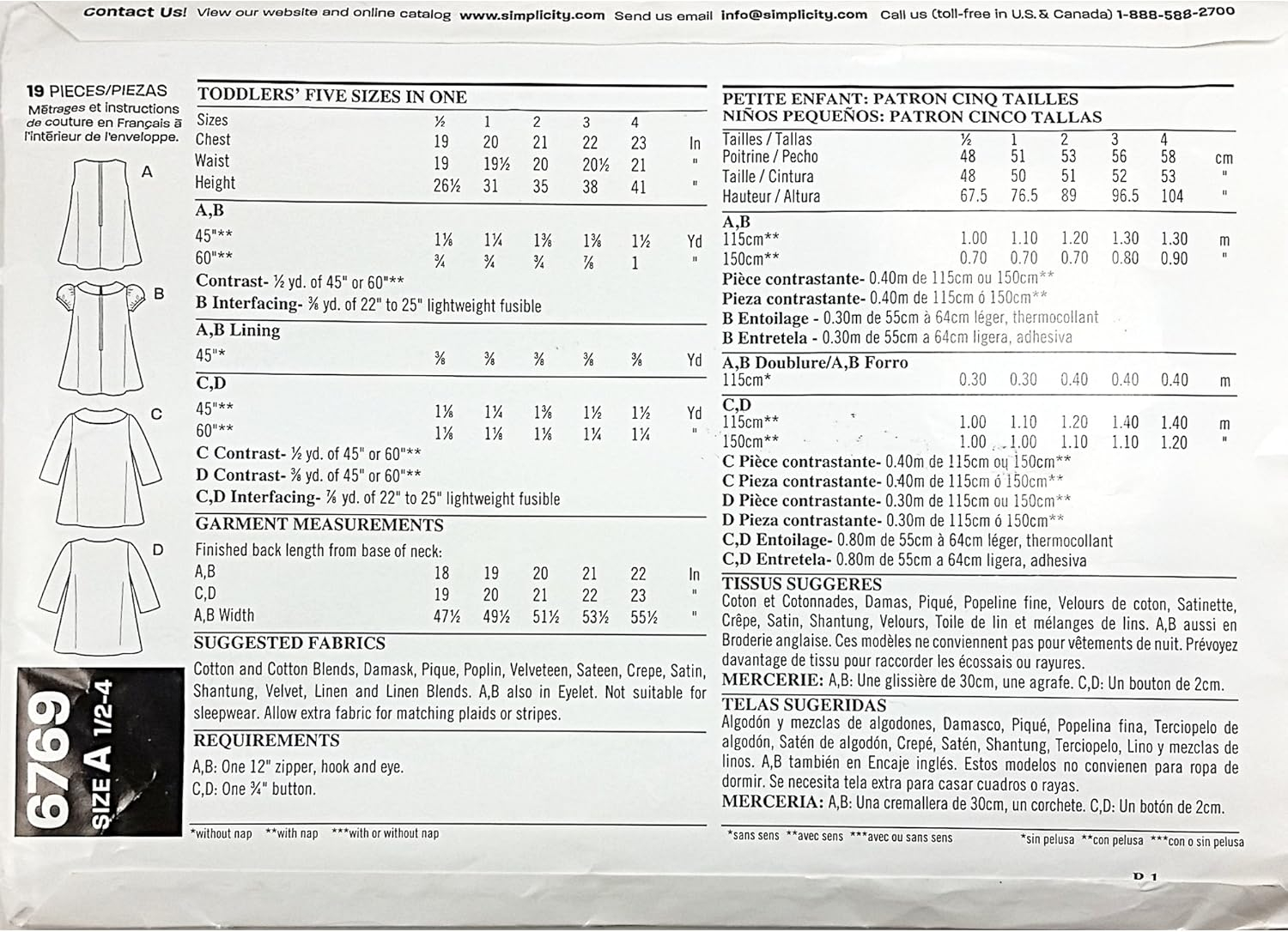 New Look 6769 Toddlers Dresses and Coats Size 1/2-4 Sewing Pattern