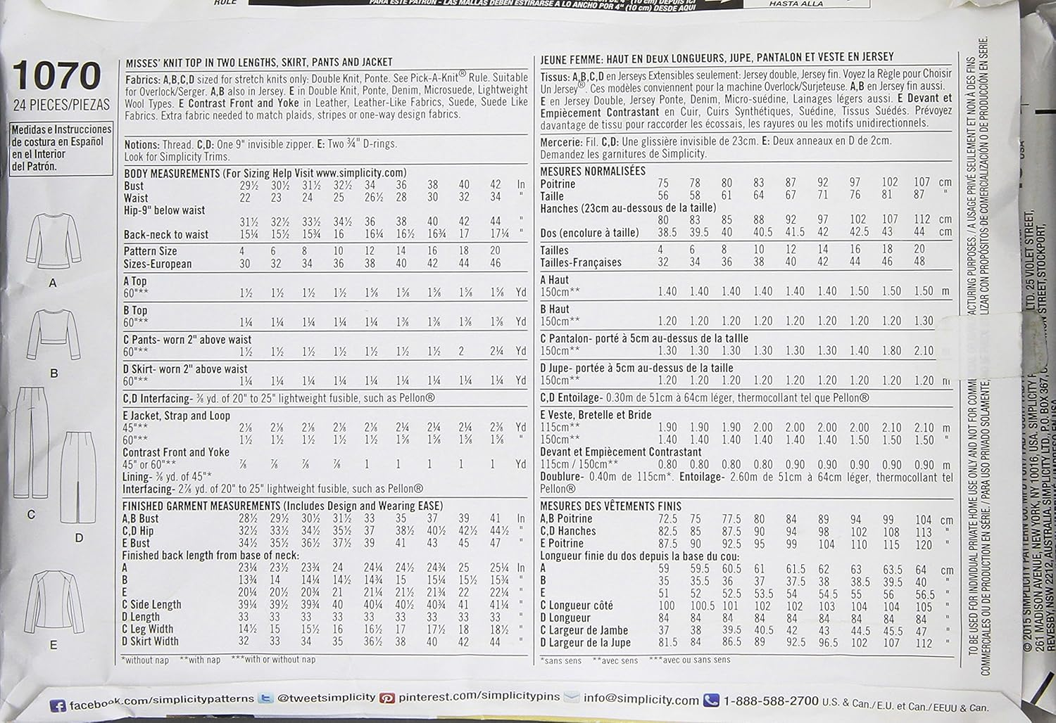 SIMPLICITY 1070 Misses’ Sew Stylish Sportswear Pattern Sewing Template, Size P5 (12-14-16-18-20)