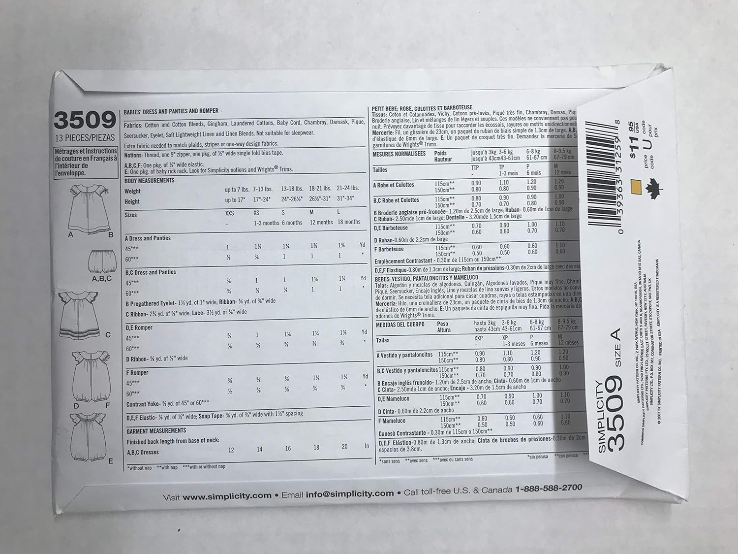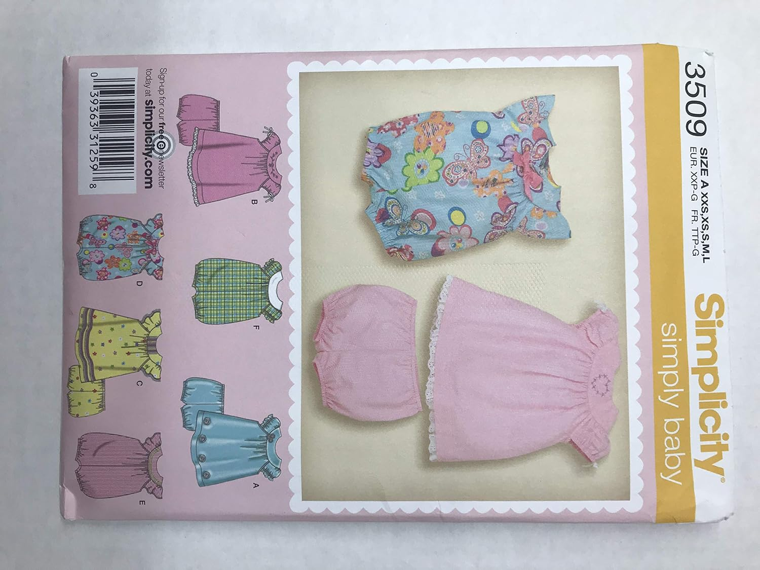 Simplicity 3509 Sewing Pattern Infants Baby Dress Panties Romper