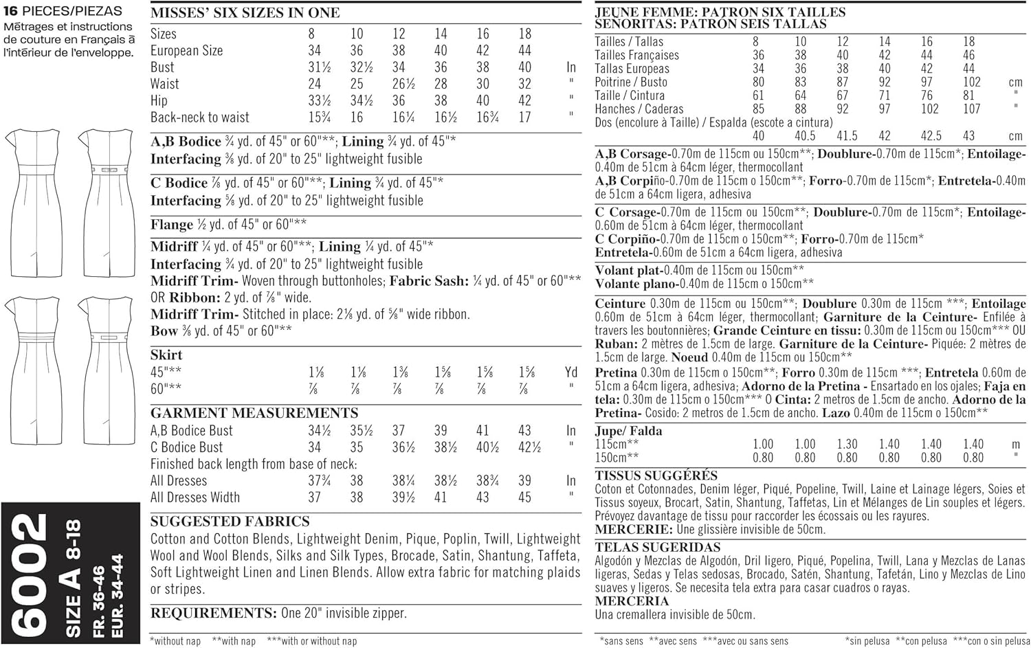 - Misses’ Design Your Look Dresses in size A (8-10-12-14-16-18), New Look Pattern #6002