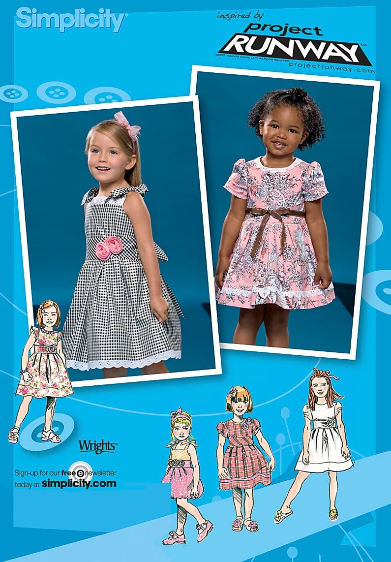 Inspired by Project Runway. Toddler’s and child’s dress sewing pattern with bodice and trim variations. Simplicity sewing pattern 2460, part of Simplicity Early Spring 2010 collection. Pattern for 1 looks. For sizes BB (4-5-6-7-8).