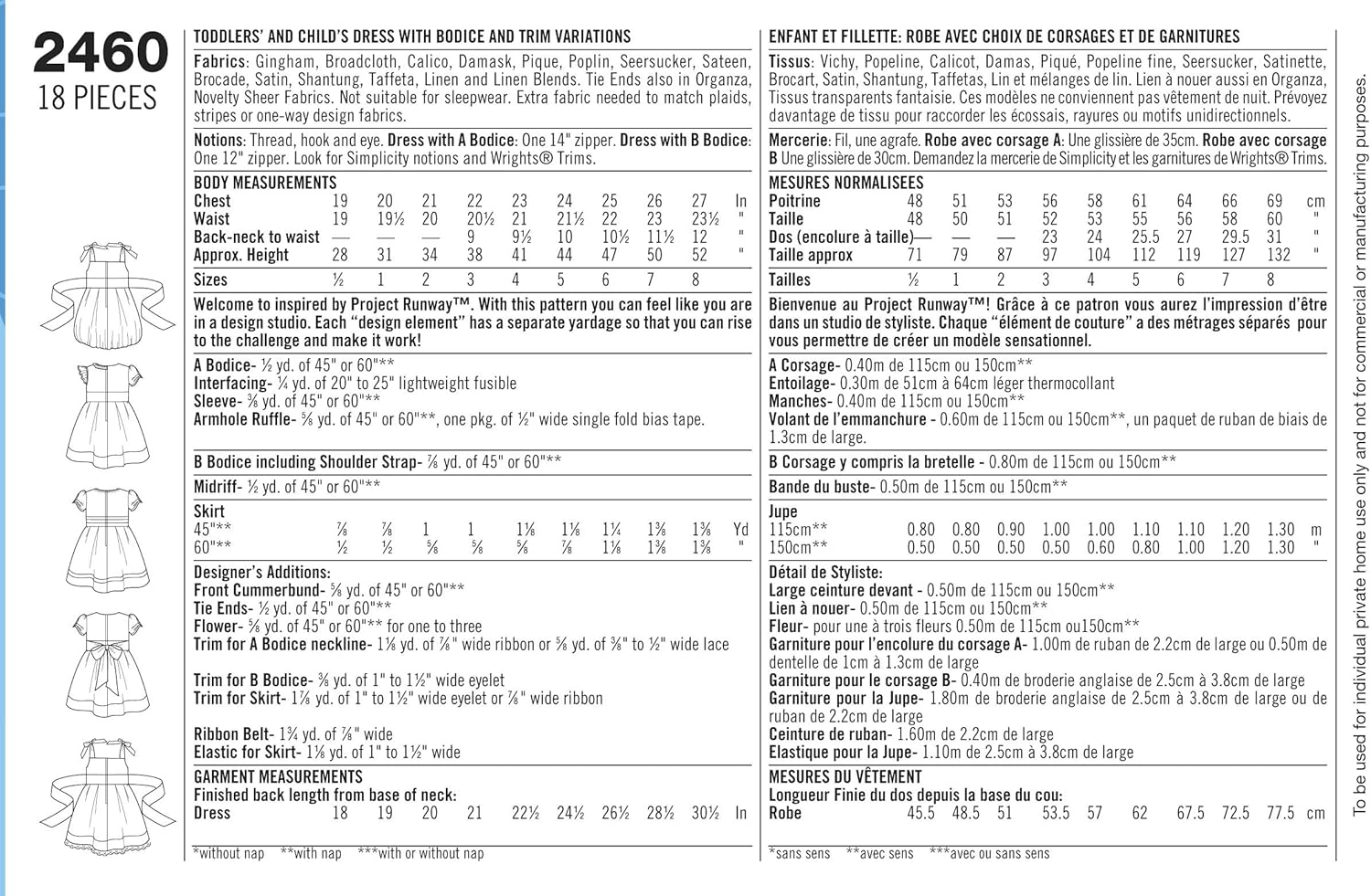 - Toddler’s and child’s dresses in size bb (4-5-6-7-8), simplicity pattern 2460