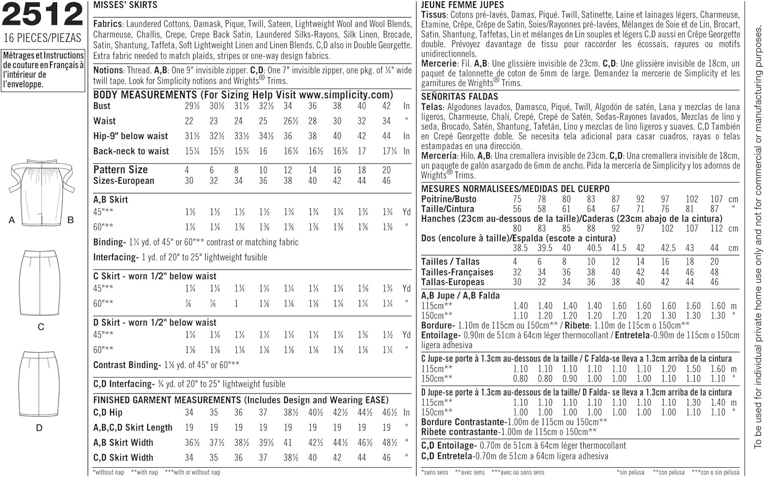 - Misses skirts in size d5 (4-6-8-10-12), simplicity pattern 2512
