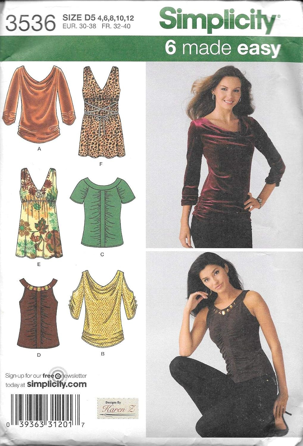Simplicity Sewing Pattern 3536 Size D5 4,6,8,10,12 Misses’ Knit Tops