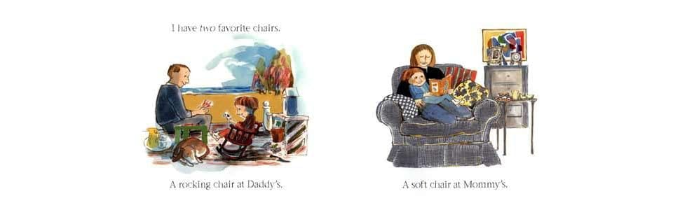At Mommy’s house, Alex has a soft chair. At Daddy’s house, Alex has a rocking chair. In each home, Alex also has a special bedroom and lots of friends to play with. But whether Alex is with Mommy or with Daddy, one thing always stays the same — Alex is loved. The gently reassuring text focuses on what is gained rather than what is lost when parents divorce, while the sensitive illustrations, depicting two unique homes in all their small details, firmly establish Alex’s place in both of them. Two Homes will help children — and parents — embrace even the most difficult of changes with an open and optimistic heart.