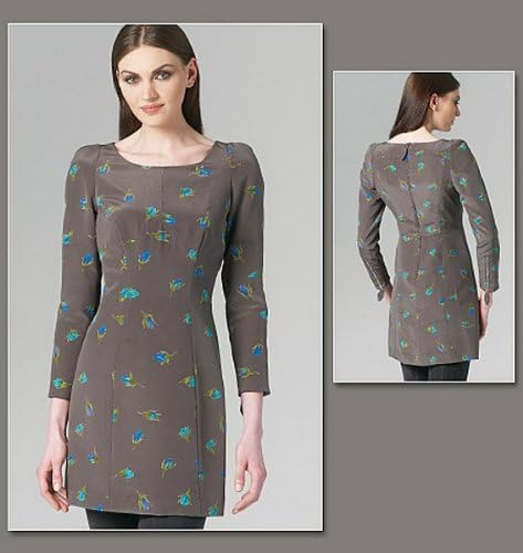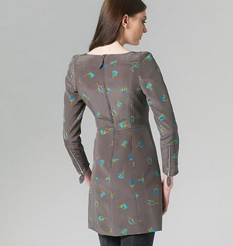 MISSES’ DRESS: Fitted through bust and waist, semi-fitted through hips. Fully lined and underlined. FABRICS: Crepe de Chine, Charmeuse, Lightweight Jersey. Lining/Underlining: China Silk. Unsuitable for obvious diagonals. *With Nap. **Without Nap. NOTIONS: One 22″ Zipper, Two 6″ Zippers, One Hook & Eye and 1/2″ Seam Binding. Combinations: A5(6-8-10-12-14), EE(14-16-18-20)