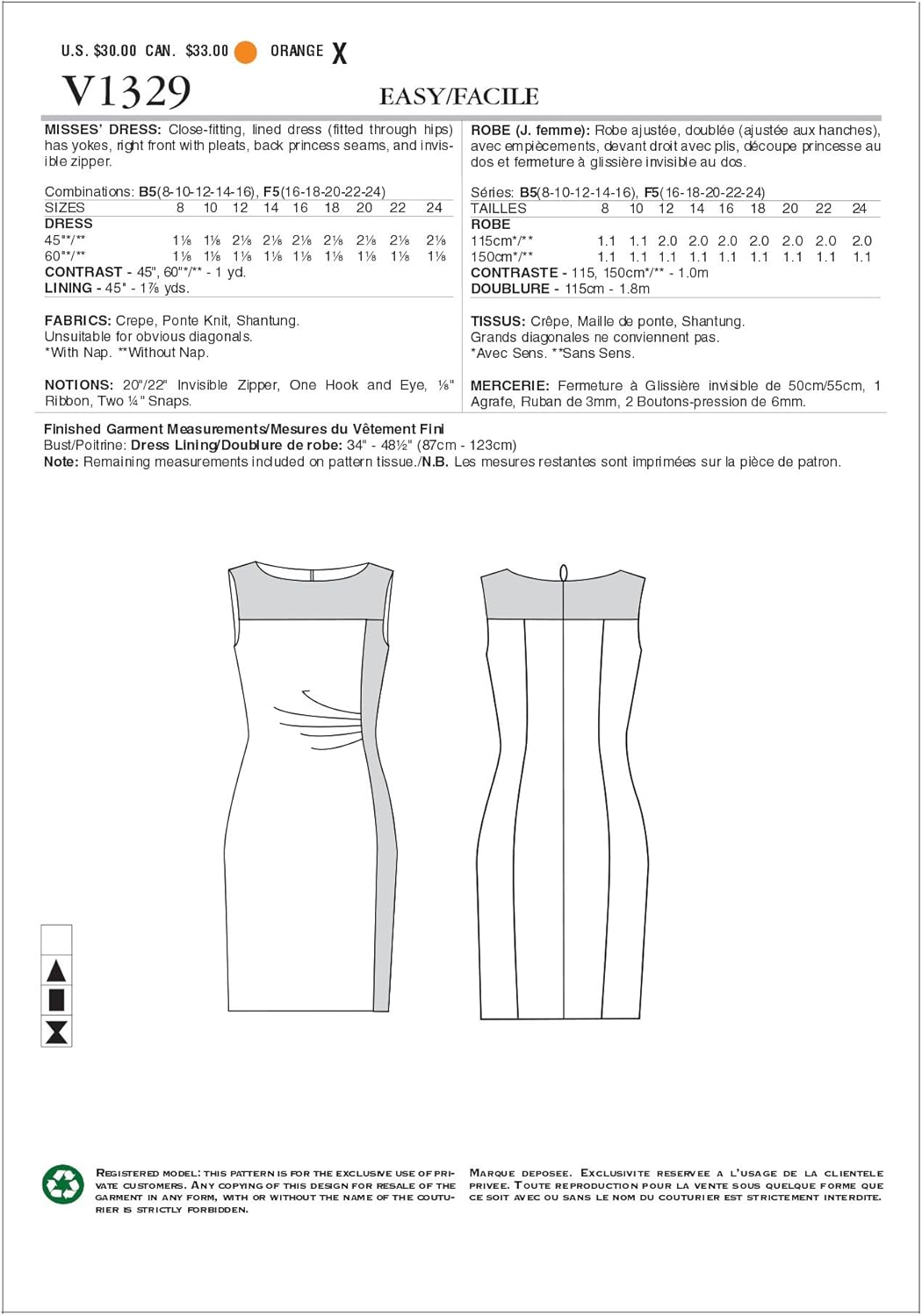 Vogue Patterns V1329 Misses’ Dress Sewing Template, Size B5 (8-10-12-14-16)