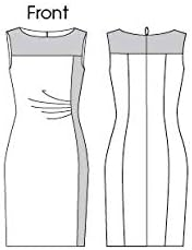 MISSES’ DRESS: Close-fitting, lined dress (fitted through hips) has yokes, right front with pleats, back princess seams and invisible zipper. FABRICS: Crepe, Ponte Knit, Shantung. Unsuitable for obvious diagonals. With Nap. Without Nap. NOTIONS: 20″/22″ Invisible Zipper, One Hook and Eye, 1/8″ Ribbon, Two 1/4″ Snaps. Combinations: B5(8-10-12-14-16), F5(16-18-20-22-24).
